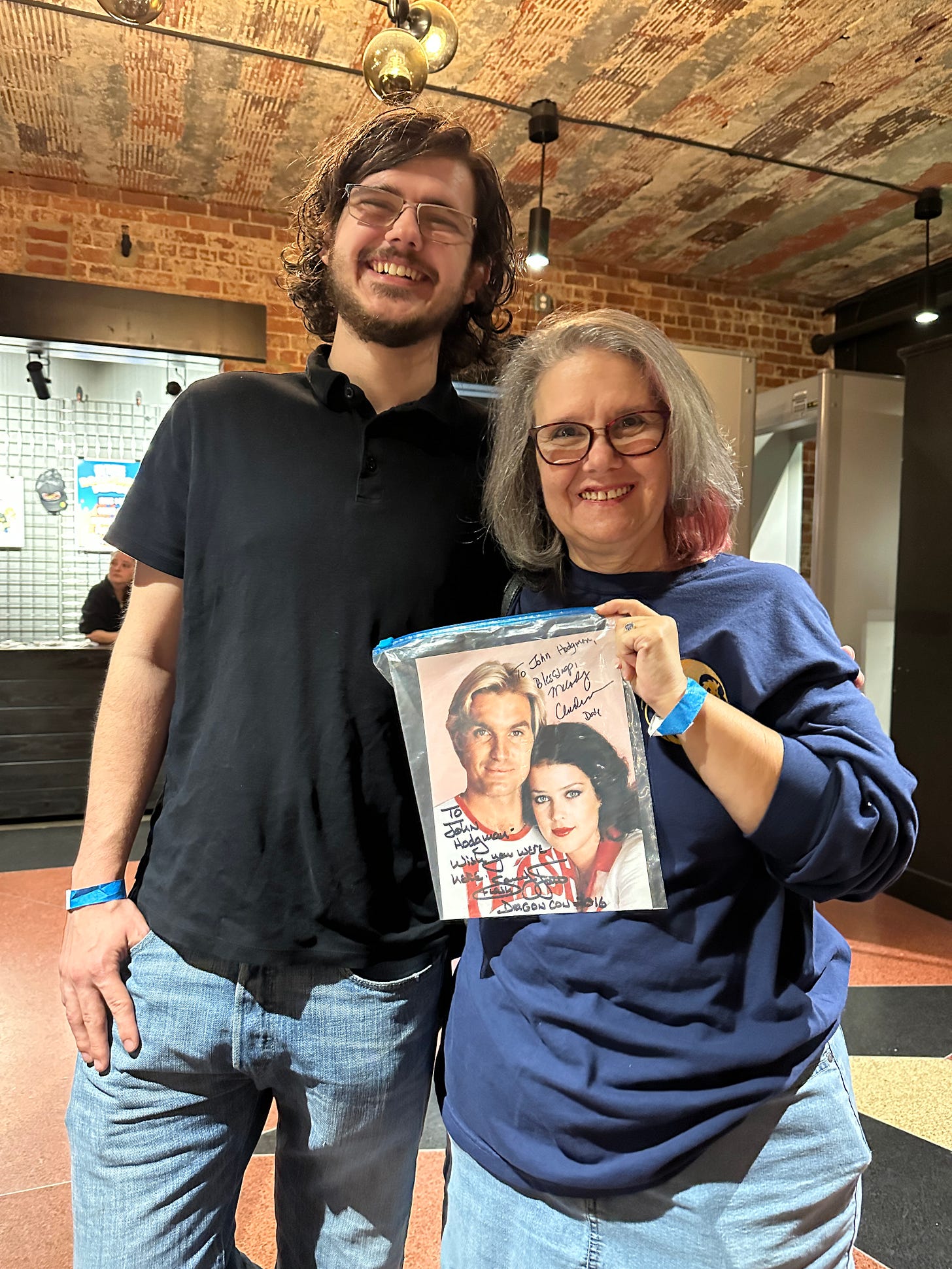 And here are two listeners fulfilling a promise they had made long ago and which I had forgotten about: presenting an autographed photo of Sam J (Flash Gordon) Jones and Melody (Dale Arden) Anderson they had gotten for me at DragonCon in 2016.