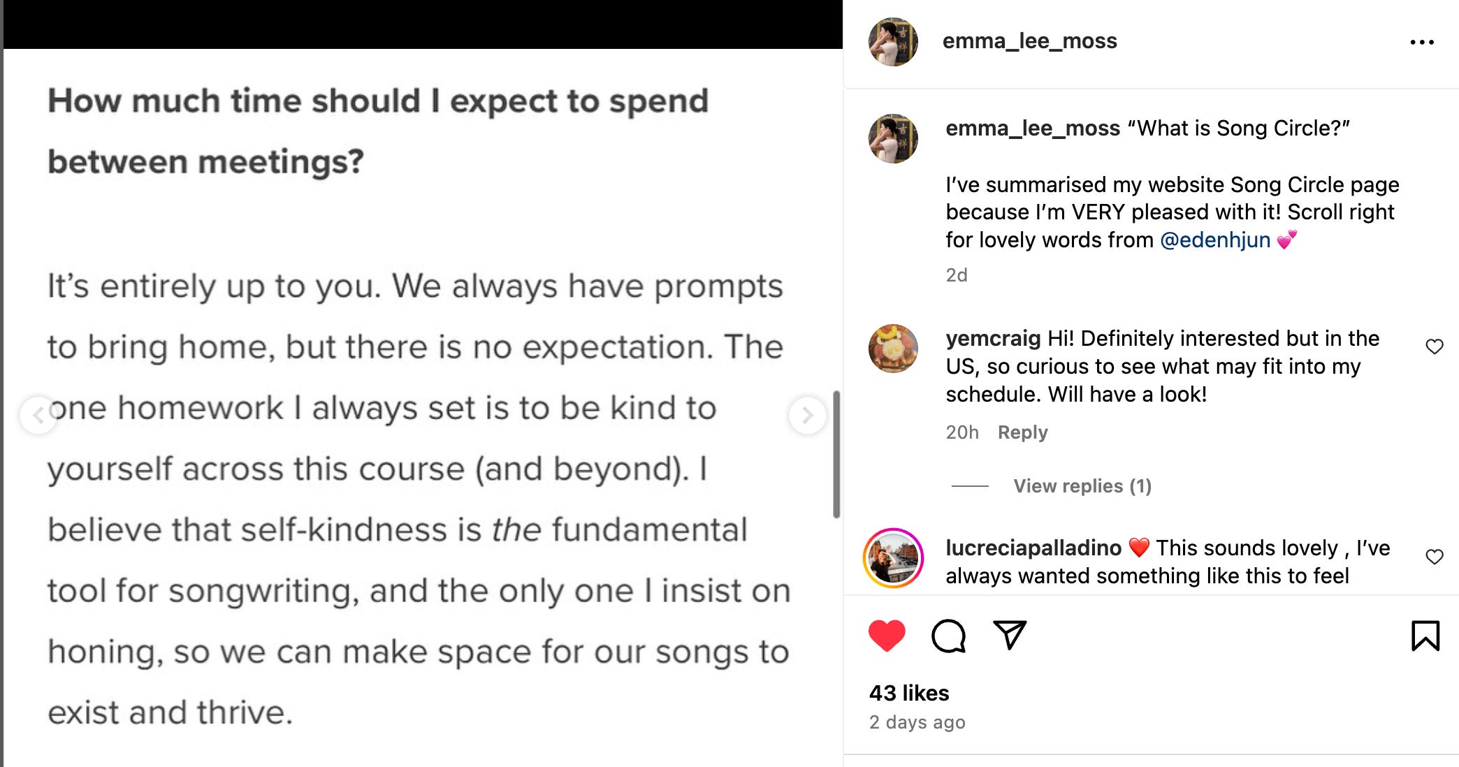 Then yesterday, while listening to that song on the subway, I saw on Emma’s social media this message, pertaining to her online song writing course called SONG CIRCLE. This is the exact message I needed, and the one maybe you need, too.
